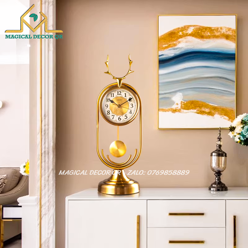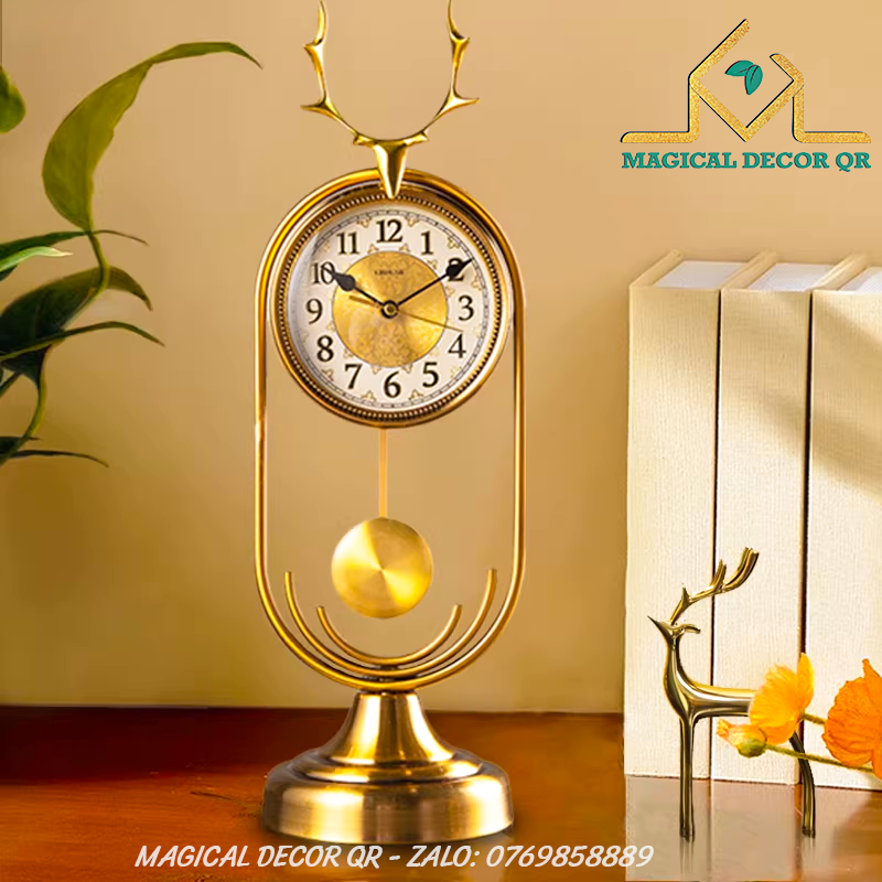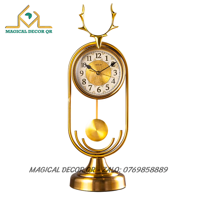 Đồng Hồ Sừng Hươu là mẫu đồng hồ để bàn mang phong cách cổ điển kết hợp thiết kế sừng hươu độc đáo, biểu tượng cho sự thịnh vượng và bền vững. Toàn bộ đồng hồ được chế tác từ kim loại cao cấp, phủ sơn tĩnh điện sáng bóng, bề mặt mặt số rõ ràng với các chi tiết tinh xảo.