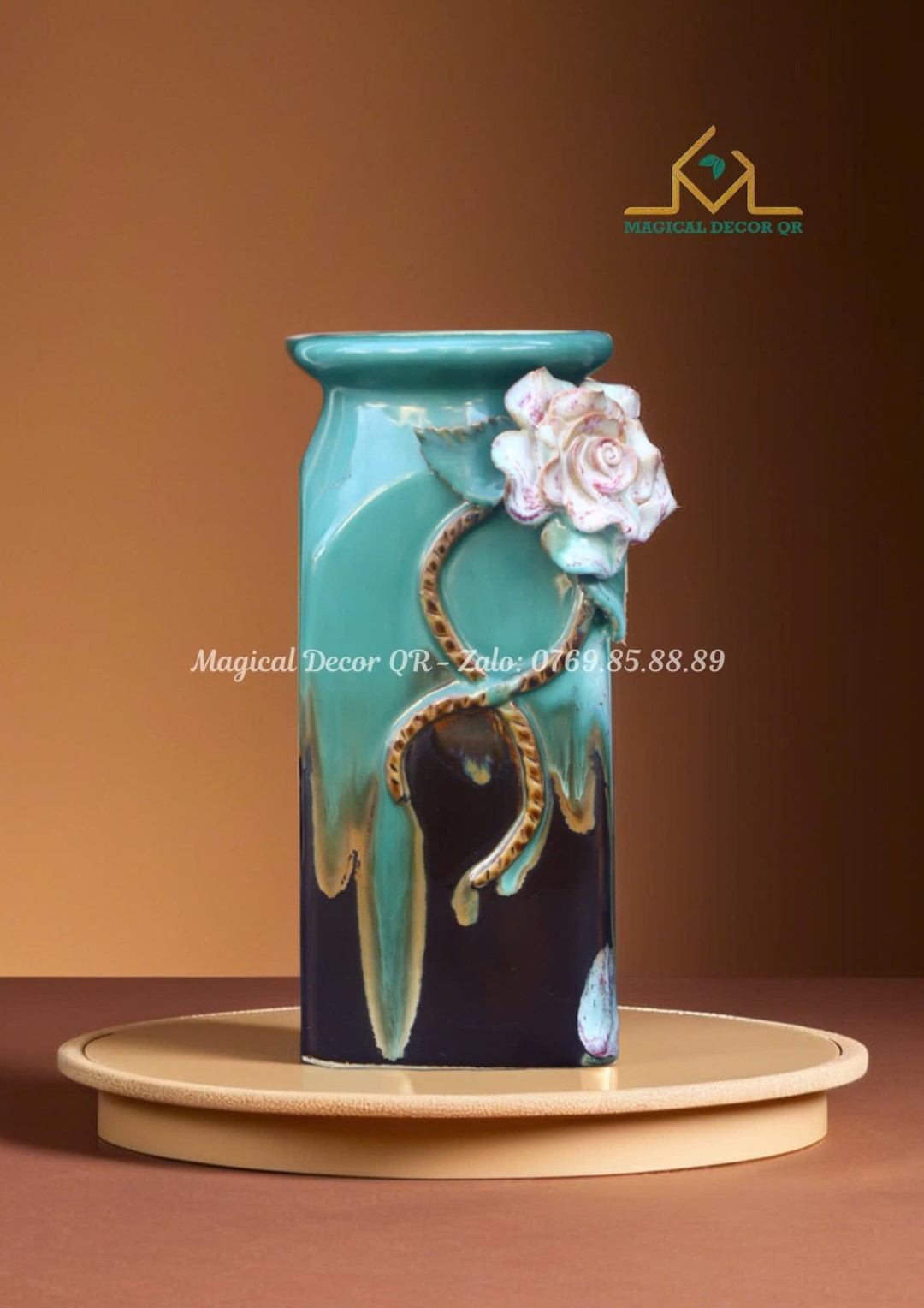 • Chất liệu: Gốm sứ thủ công đắp nổi, nung nhiều lớp