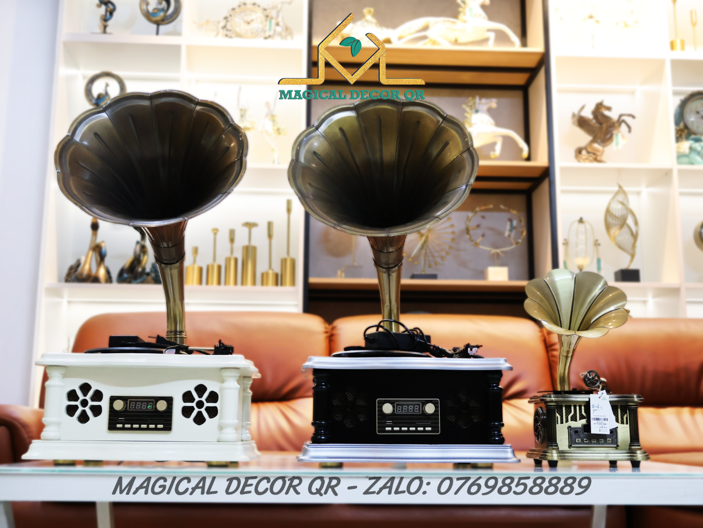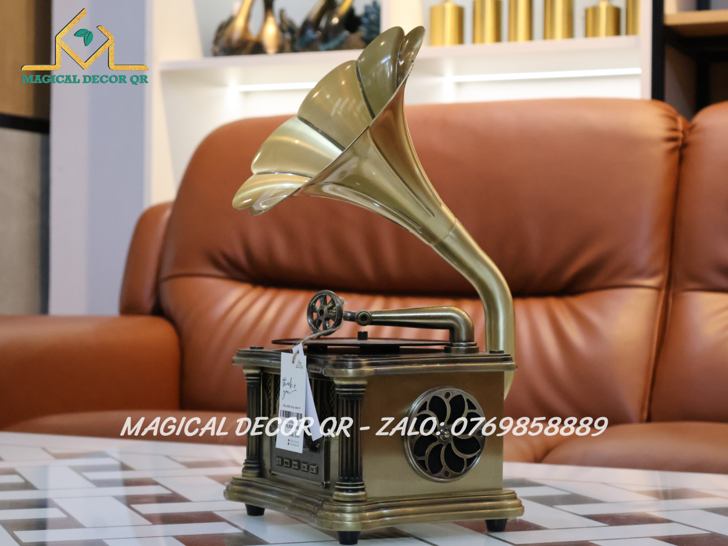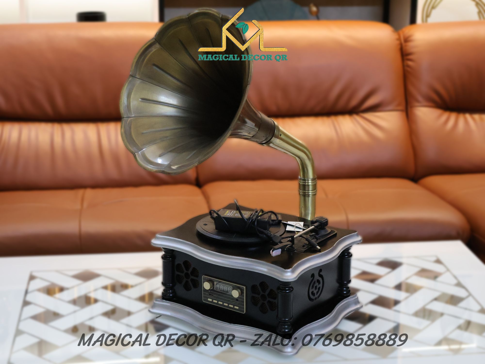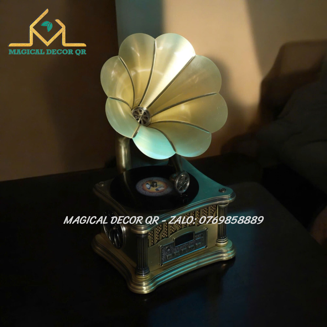 Máy Phát Nhạc là sự kết hợp hoàn hảo giữa hoài cổ và công nghệ hiện đại. Lấy cảm hứng từ chiếc máy hát đĩa than cổ điển, sản phẩm mang đến nét sang trọng, tinh tế và tạo điểm nhấn nghệ thuật độc đáo cho mọi không gian sống. Phần loa kèn kim loại cổ điển kết hợp cùng phần thân gỗ sơn màu trang nhã, vừa gợi nhớ không khí xưa cũ, vừa mang lại trải nghiệm âm nhạc chất lượng cao.