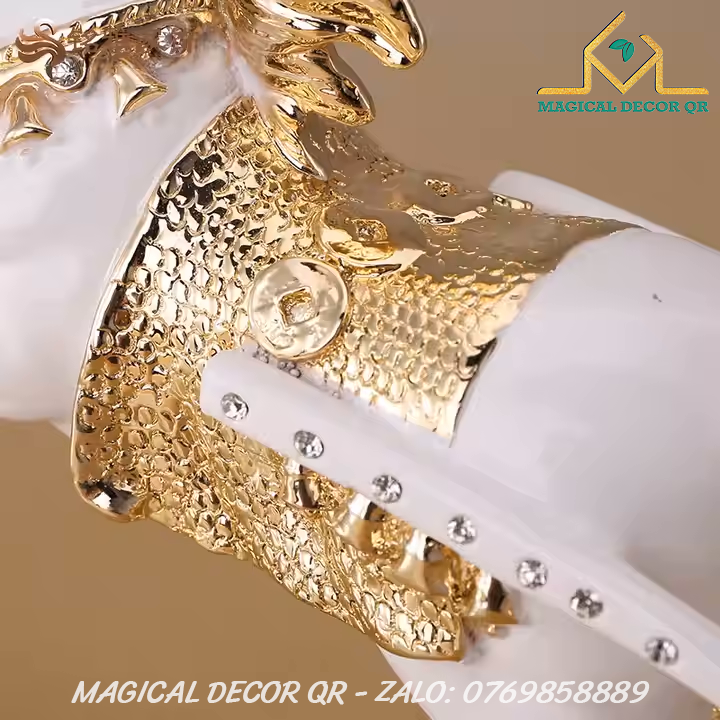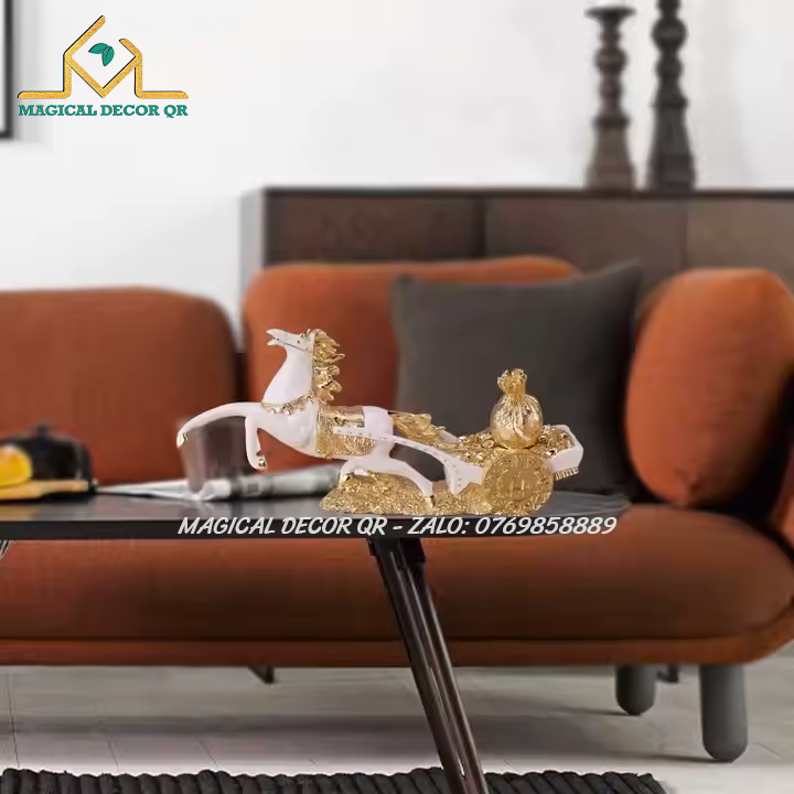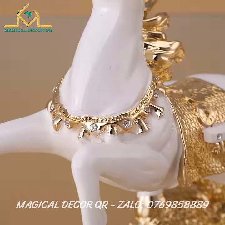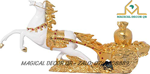 Tượng Ngựa Kéo Tiền là biểu tượng phong thủy may mắn, mang thông điệp mã đáo thành công – tài lộc dồi dào. Hình ảnh chú ngựa mạnh mẽ, phi nước đại, kéo theo cỗ xe chở đầy vàng bạc, thể hiện ý nghĩa thu hút tiền tài, công danh thuận lợi, sự nghiệp hanh thông. Màu trắng tinh khôi kết hợp chi tiết vàng ánh kim sang trọng càng tôn lên vẻ đẳng cấp và thu hút mọi ánh nhìn.