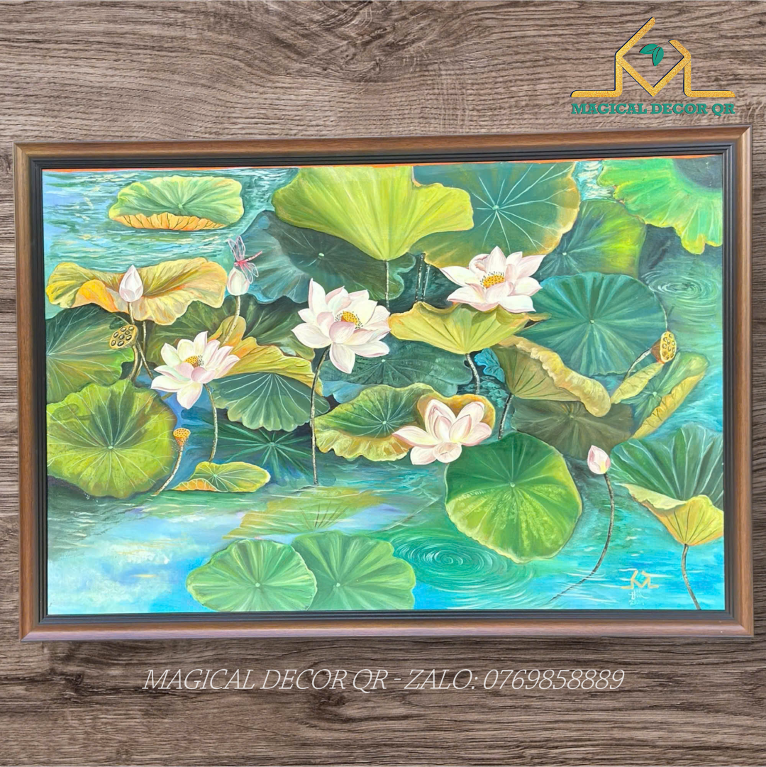 Tranh sơn dầu “Sen Xanh Ngọc” – Giai điệu thanh thuần của thiên nhiên