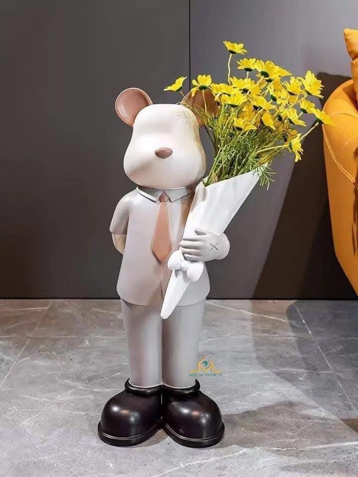Tượng Gấu Cắm Hoa Decor là điểm nhấn độc đáo mang đậm phong cách hiện đại và tinh nghịch cho không gian sống. Với thiết kế hình gấu mặc vest cách điệu cùng chi tiết dây nịt sang trọng, sản phẩm tạo nên sự kết hợp hài hòa giữa nghệ thuật Pop Art và tính ứng dụng trang trí cao cấp.