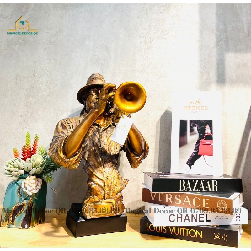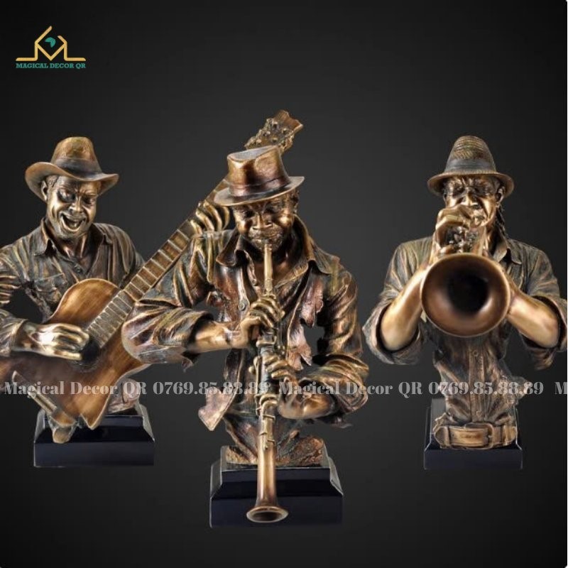 Không chỉ là món đồ trang trí, tượng còn như một biểu tượng thôi thúc tinh thần lạc quan, khơi nguồn sáng tạo cho không gian sống. Màu đồng cổ phối sắc đen bụi bặm tạo nên phong cách vintage phóng khoáng, phù hợp với những ai yêu nghệ thuật, đam mê âm nhạc và phong cách sống phóng khoáng.