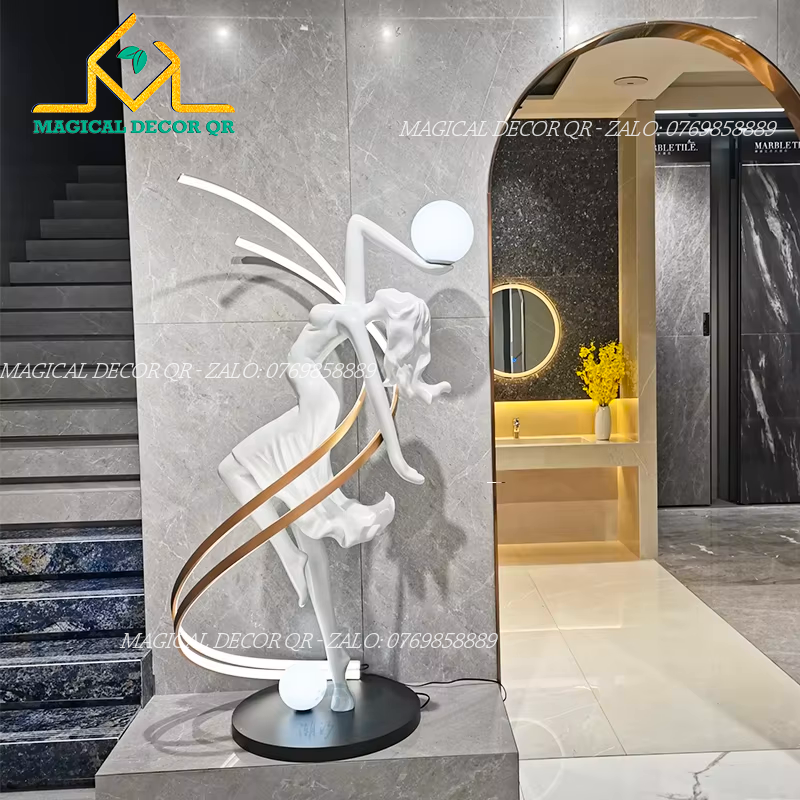 Đèn sàn nghệ thuật Tượng Vũ Nữ Trắng là sự giao thoa giữa điêu khắc và ánh sáng, mang đến điểm nhấn độc đáo cho không gian. Với hình dáng vũ công uyển chuyển từ resin cao cấp, kết hợp dải LED và chao thủy tinh mờ, đèn tạo hiệu ứng ánh sáng dịu nhẹ, đầy tính nghệ thuật.