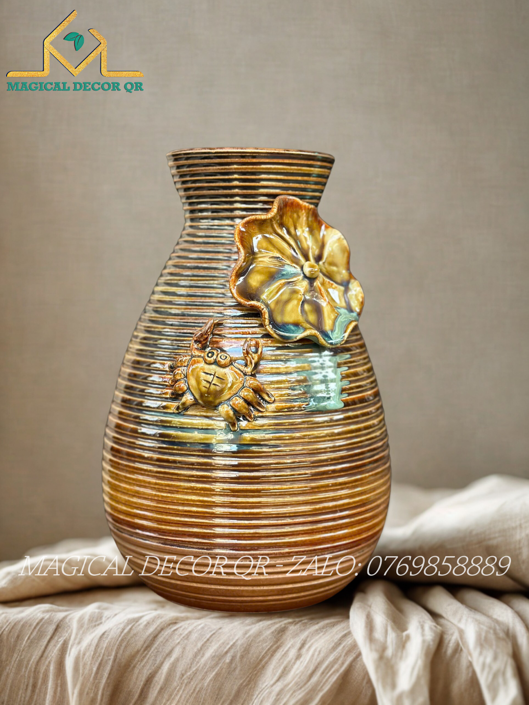 Bình Gốm Bát Tràng Đắp Nổi – Thủ Công Độc Bản, Tinh Hoa Truyền Thống Giao Hòa Hiện Đại