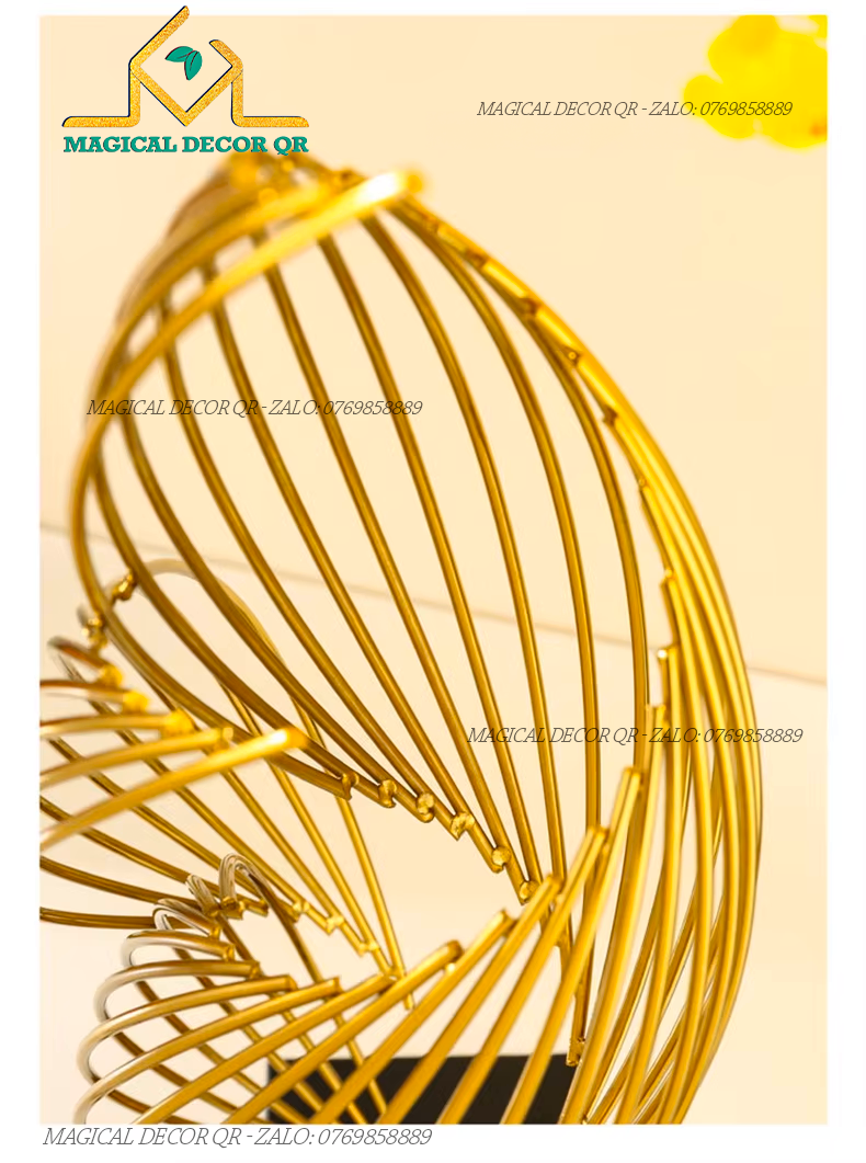 Vòng Xoay Xoắn Ốc– Điểm nhấn trang trí tinh tế, mang phong cách hiện đại & light luxury. Thiết kế khối xoắn ốc kim loại ánh vàng độc đáo, gợi hình chuyển động mềm mại, tạo hiệu ứng không gian sang trọng và nghệ thuật.