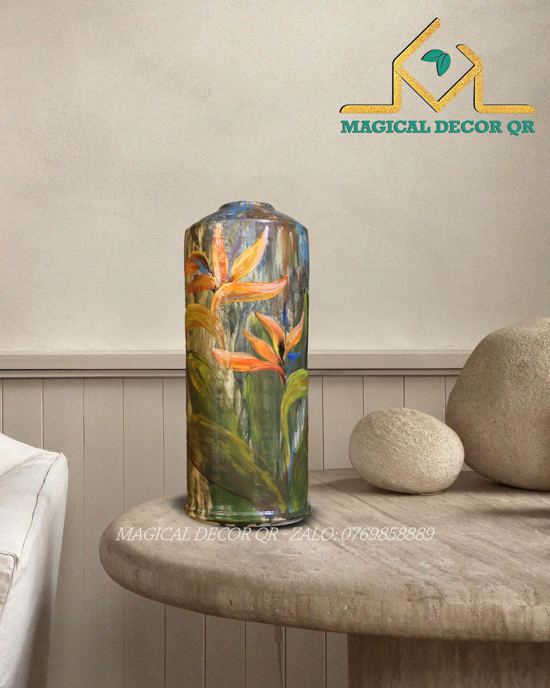 Không chỉ là vật phẩm trang trí, bình gốm Bát Tràng còn mang ý nghĩa phong thủy, giúp cân bằng năng lượng và thu hút vượng khí cho không gian sống. Thiết kế giao hòa giữa tinh thần truyền thống và thẩm mỹ đương đại, phù hợp cho những ai yêu cái đẹp và đề cao sự tinh tế.